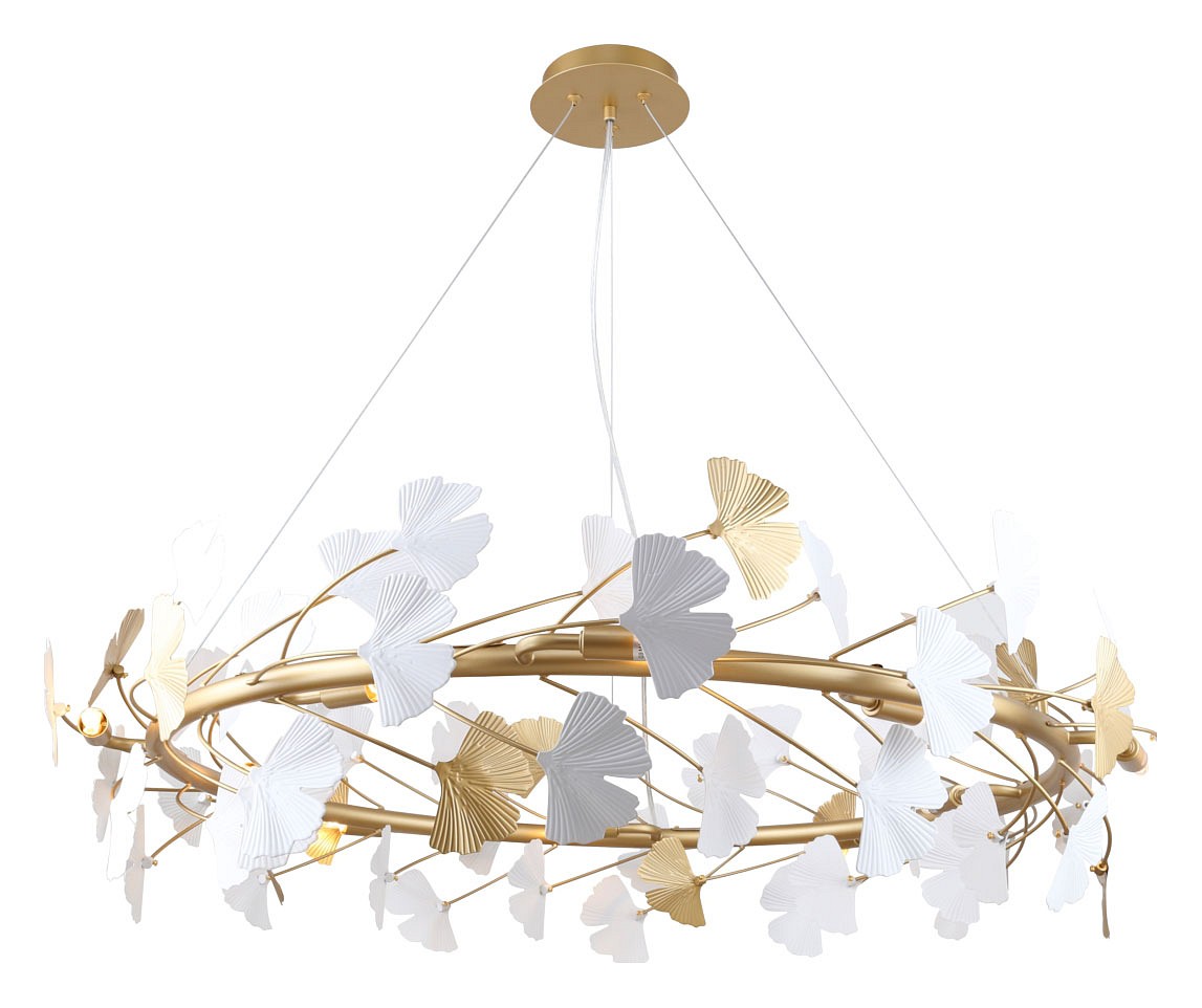 Металлический каркас цвета окрашенное золото, декор в виде листьев Гинкоа в белом и золотом цвете, сменные лампы. Коллекция светильников с золотой арматурой и декором в виде листьев гинкго билоба белого и золотого цвета – это великолепное сочетание элегантности и природной красоты. Золотой цвет арматуры придает светильникам изысканный вид и добавляет в интерьер нотку роскоши. Декор в виде листьев гинкоа белого и золотого цвета создает ощущение природной красоты и спокойствия.