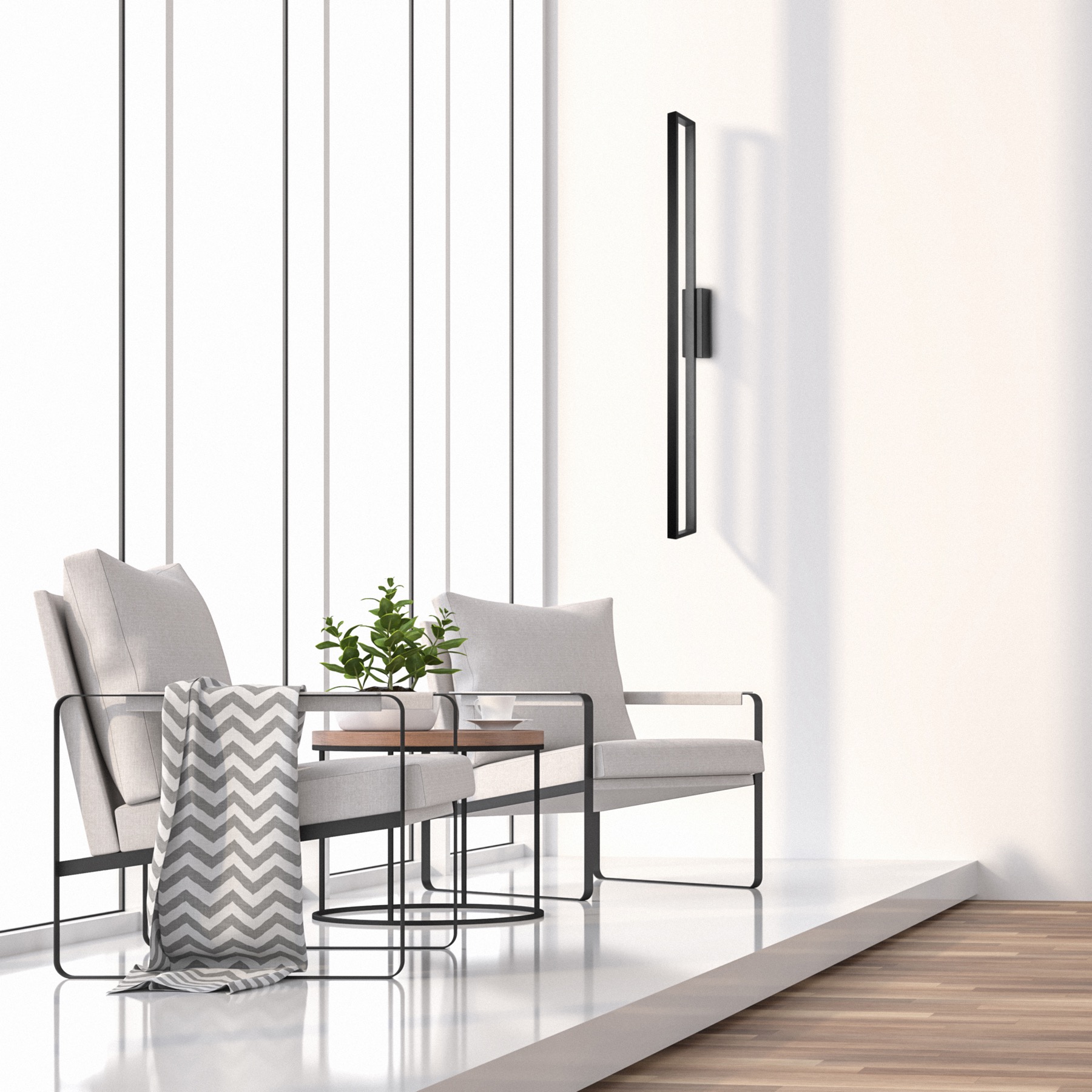 Доступный в трех размерах и отделке черного или белого цвета самый большой настенный светильник измеряет впечатляющую высоту 1 м для драматического воздействия.